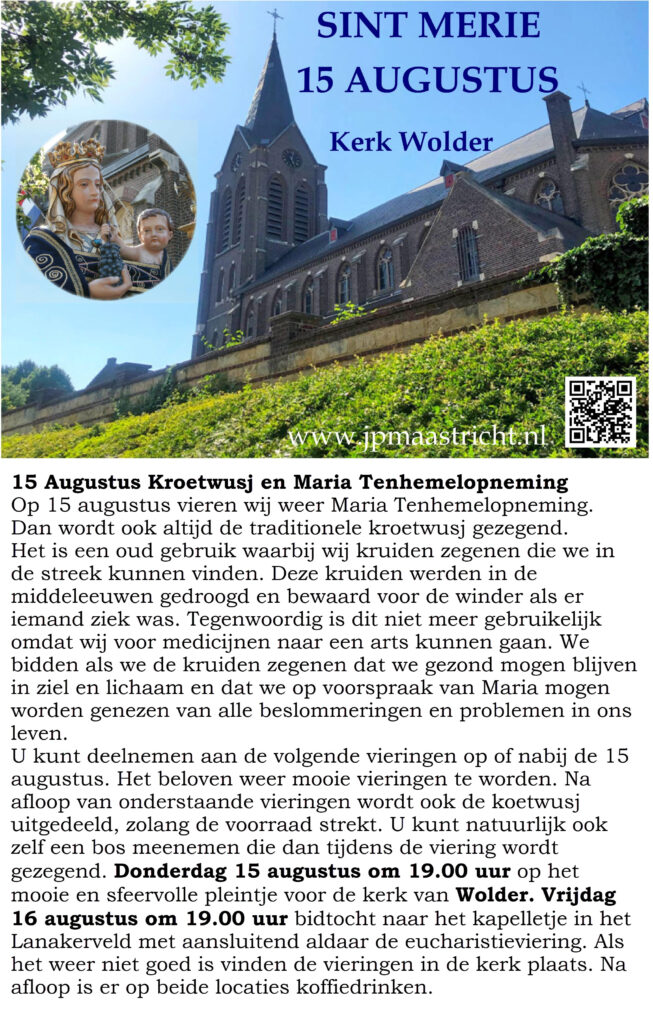 15 augustus Sint Merie – Maria Tenhemelopneming
